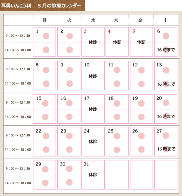 耳鼻いんこう科 4月の診療カレンダー
