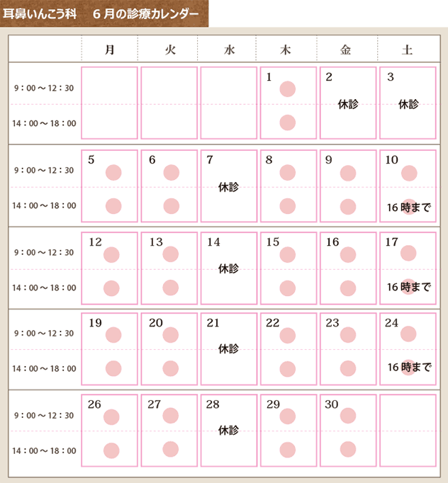 耳鼻いんこう科 4月の診療カレンダー
