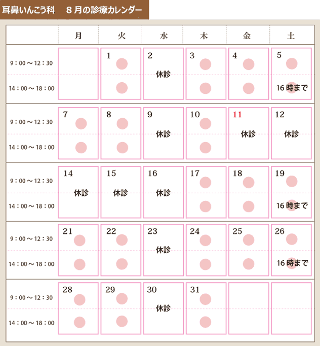 8月の診療日カレンダー