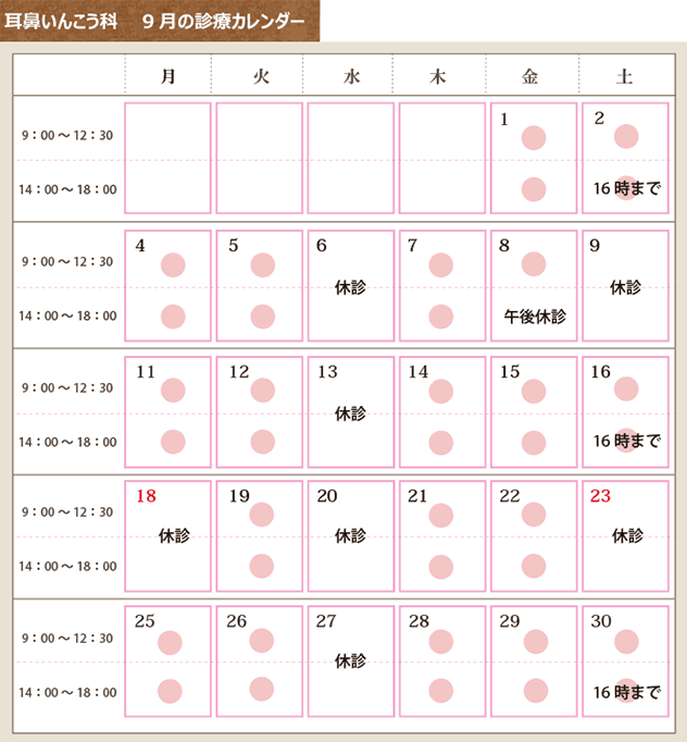 9月の診療日カレンダー