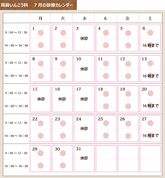 7月の診療日カレンダー