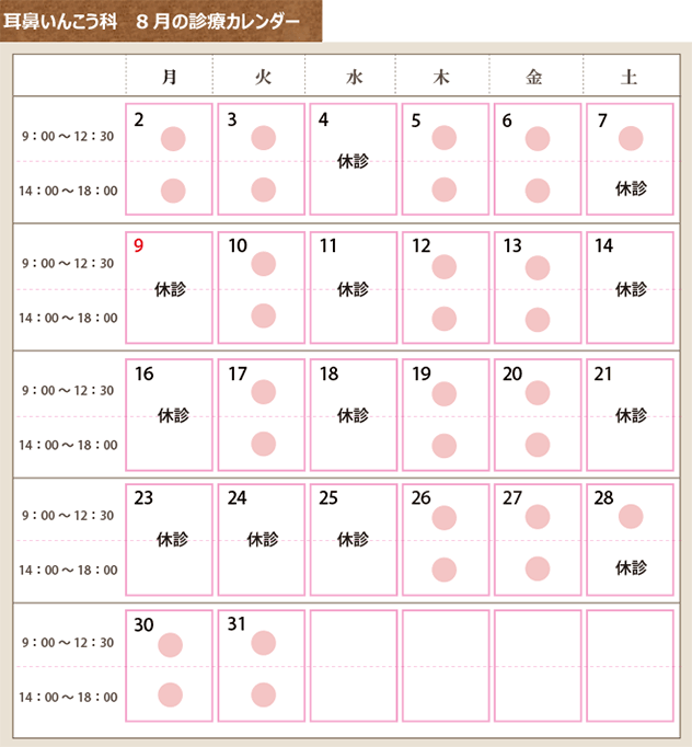 耳鼻いんこう科 4月の診療カレンダー