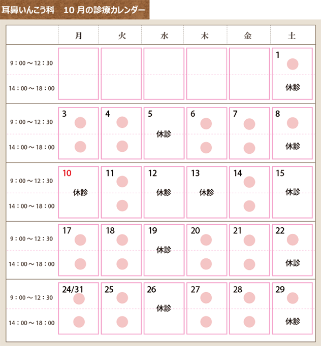10月の診療日カレンダー