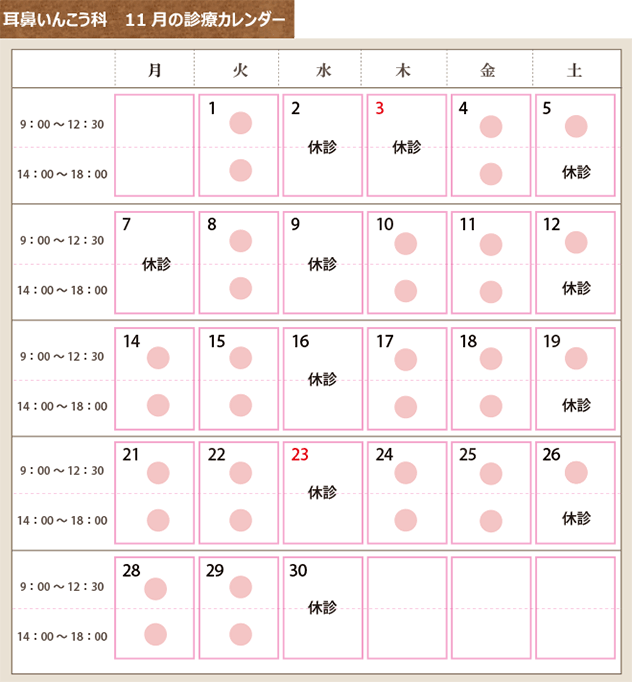 11月の診療日カレンダー