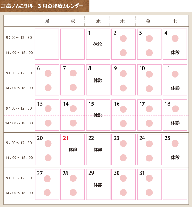 3月の診療日カレンダー