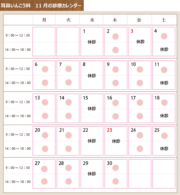 11月の診療日カレンダー