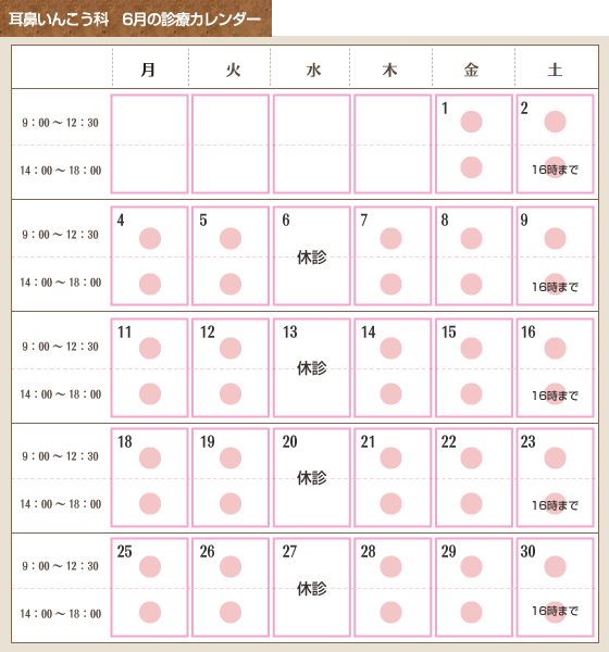 耳鼻いんこう科 4月の診療カレンダー