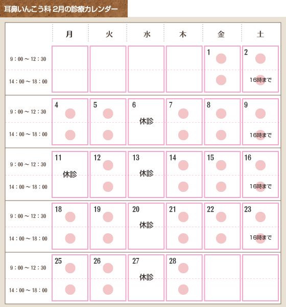 耳鼻いんこう科 4月の診療カレンダー