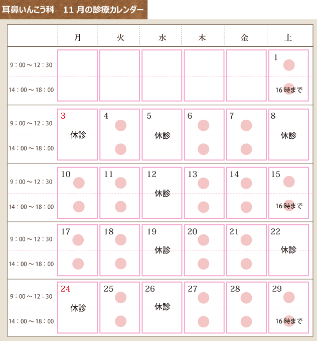 11月の診療日カレンダー