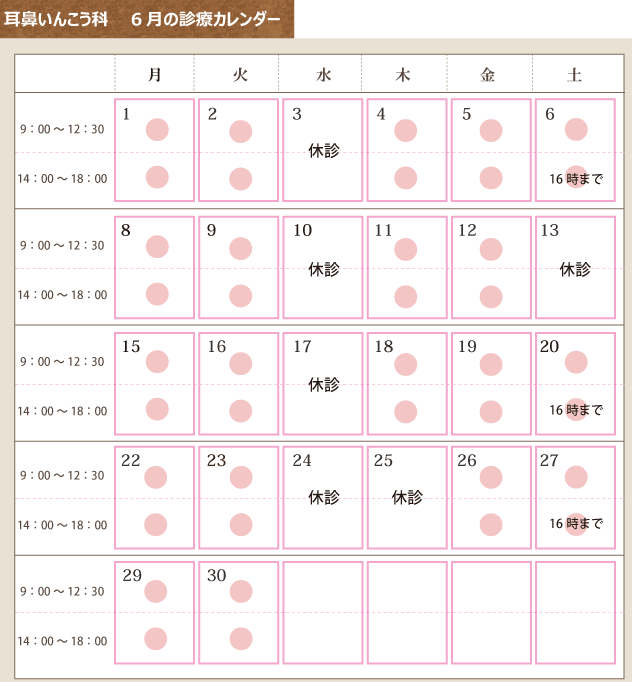 耳鼻いんこう科 4月の診療カレンダー